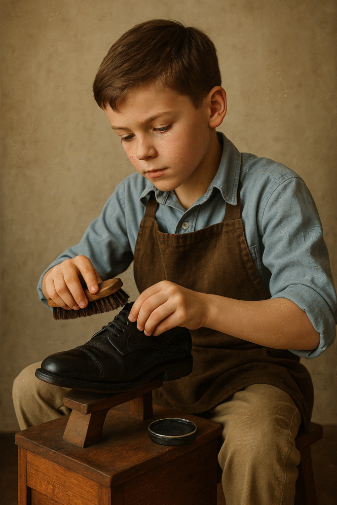 Instead of shouting or chasing customers like most sellers, he stands silently at one corner of the station. He carefully observes the people passing by. When he notices someone with a stain on their shoe, he politely approaches them and offers to clean their shoes — for free!